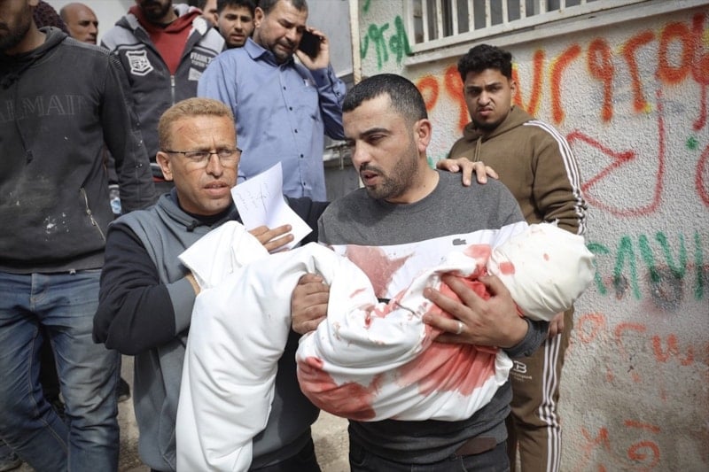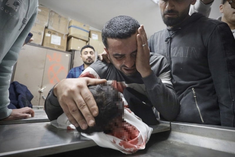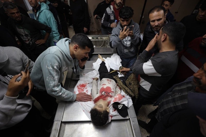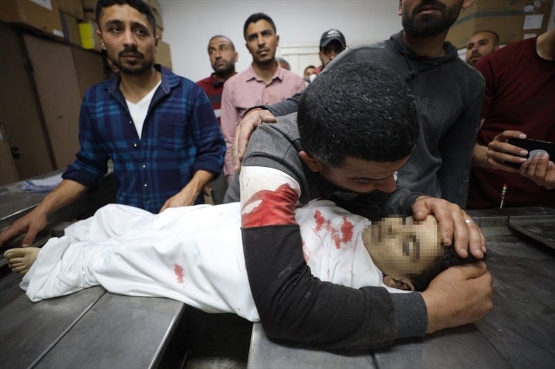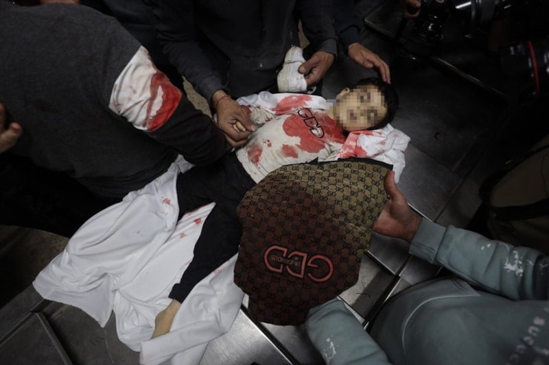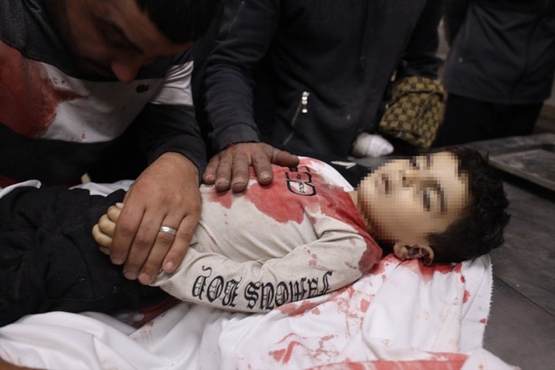Saldırıda hayatını kaybeden 4 Filistinlinin cenazesi Şifa Hastanesi’ne götürülürken, yaşamını yitirenler arasında 3 yaşındaki Yahya el-Melahi’nin de bulunduğu açıklandı.