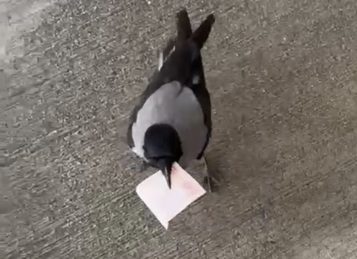 Geçtiğimiz günlerde kargayı önce poğaçayla besleyen Genç, ardından mizah amaçlı video çekmek için karganın önüne 10 TL bıraktı.