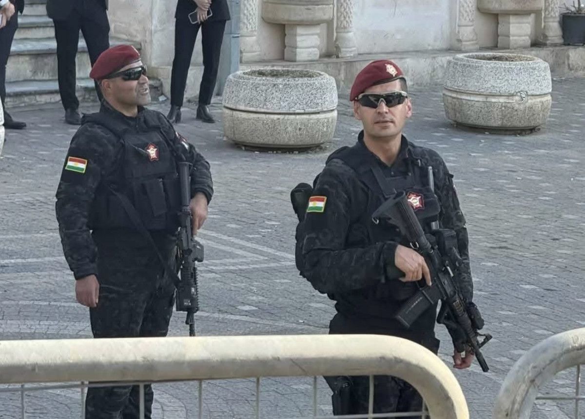 Barzani'ye burada uzun namlulu silahlarla peşmerge güçleri eşlik etti.