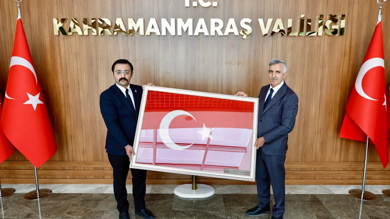 Kahramanmaraş Azerbaycan Eğitim Kültür ve Dayanışma Derneği Başkanı Tural Şahbazlı, Kahramanmaraş Valisi Mükerrem Ünlüer’i makamında ziyaret etti.KAHRAMANMARAŞ (İGFA) - Kahramanmaraş Valisi Mükerrem Ünlüer’i makamında ziyaret eden Kahramanmaraş Azerbaycan Eğitim Kültür ve Dayanışma Derneği Başkanı Tural Şahbazlı, ziyaret kapsamında, 6 Şubat 2023 tarihinde meydana gelen Kahramanmaraş merkezli depremlerde Azerbaycan Olağanüstü Haller Bakanlığı Karargâhı’nda dalgalanan Türk Bayrağı'nı Vali Ünlüer’e takdim etti.