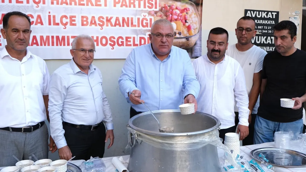 Milliyetçi Hareket Partisi (MHP) Kumluca İlçe Başkanlığı tarafından Muharrem ayı dolayısıyla vatandaşlara aşure ikramında bulunuldu.Mehmet ŞENTÜRK/ ANTALYA (İGFA) - Antalya'ya bağlı Kumluca ilçe merkezinde düzenlenen etkinliğe Kumluca Kaymakamı Bahadır Güneş, Kumluca Belediye Başkanı Mesut Avcıoğlu, Kumluca Müftüsü Bedir Aydın, kamu kurumlarının daire amirleri, siyasi parti ve sivil toplum kuruluşlarının temsilcileri, belediye meclis üyeleri ile mahalle muhtarları katıldı.