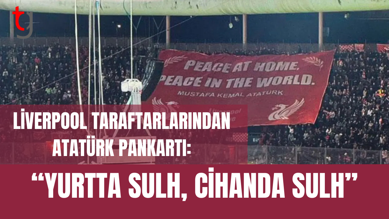 Karşılaşma öncesinde deplasman tribününde bulunan Liverpool taraftarları, Mustafa Kemal Atatürk’ün dünya barışına dair ünlü sözünün yer aldığı bir pankart açtı.