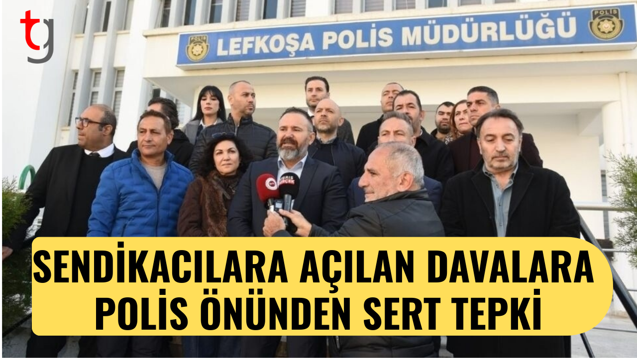 Maliye Bakanlığı önünde yapılan eylemde demir bariyerlere zarar verildiği gerekçesiyle beş sendikacıya dava okunması üzerine, Kıbrıs Türk Orta Eğitim Öğretmenler Sendikası, Kıbrıs Türk Öğretmenler Sendikası, Kıbrıs Türk Amme Memurları Sendikası, Kamu İşçileri Sendikası ve Kamu Görevlileri Sendikası bu saatlerde polis müdürlüğü önünde basın açıklaması yaptı.